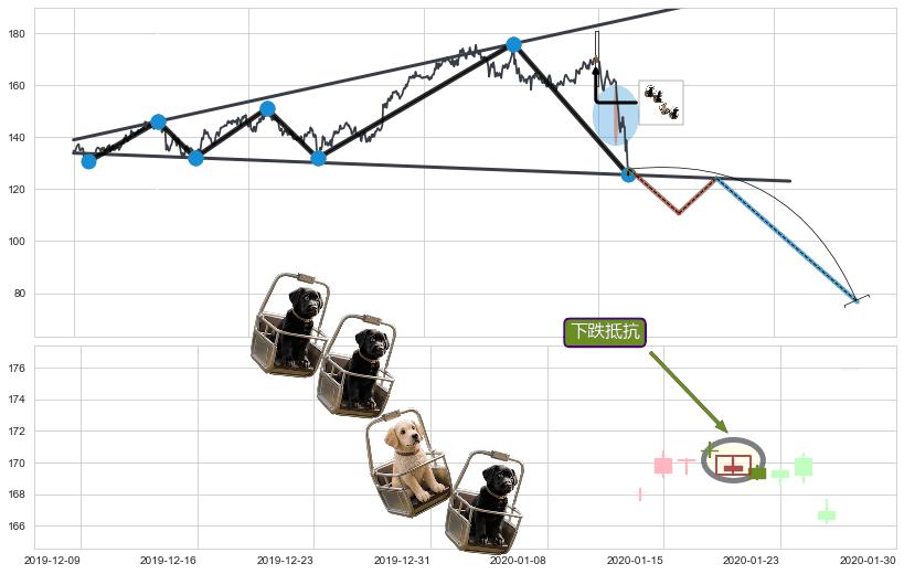 ➣ 收盘价(2020-01-15: 170.30 )→回踩→第一根k线低点(2020-01-10: 168.91 )