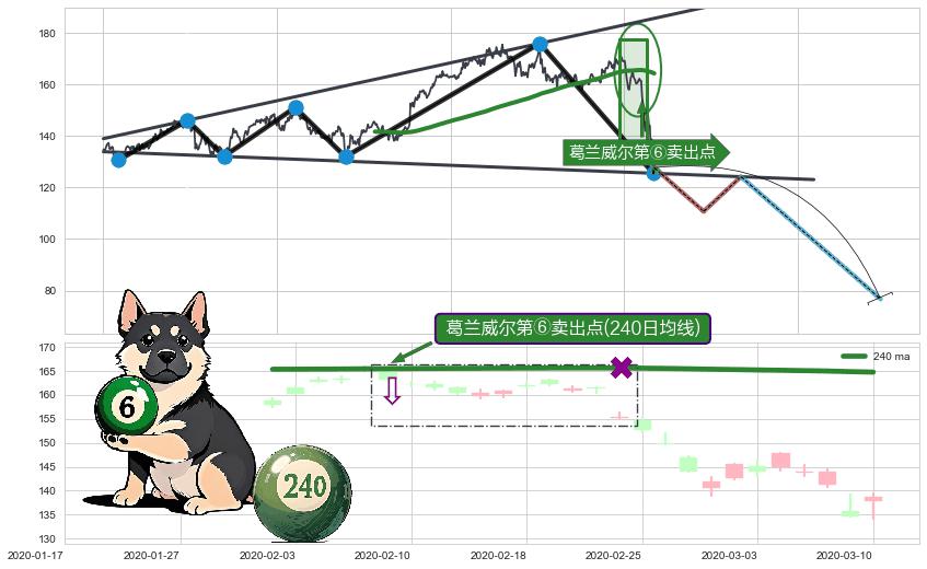 ➢ 【卖0】上涨趋势线在→(2020-02-26: 151.25 )被突破,反转趋势形成
