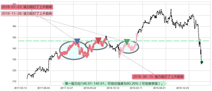 ♞ 第一阻力位146.91价格为146.91,其通过量化计算出的可信任强度为80.29%(可信度很强)。