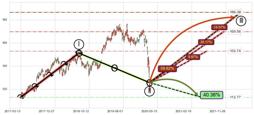 ➣ 循环浪继续向上【平均值】位置(2021-11-10, 169.56),匹配聚类样本比例59.00%, 可能性概率35.17%