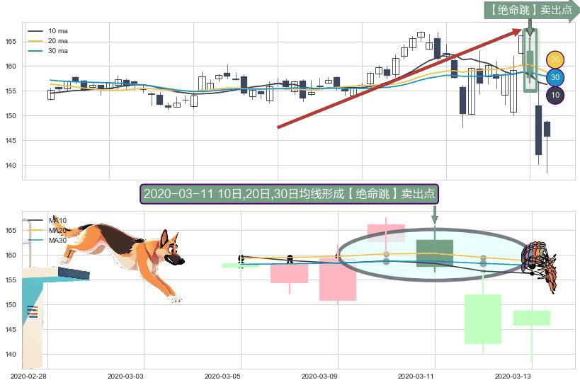 ⚀ 2020-03-11日显现 10日-20日-30日均线 【绝命跳】卖出点 看空信号,后市看跌,卖出