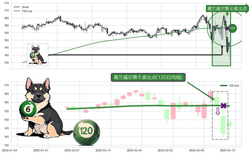 ⚀ 2020-03-11-日显现 葛兰威尔均线 120日均线 第⑥卖出点 走势反转见顶信号,后市看跌,卖出信号