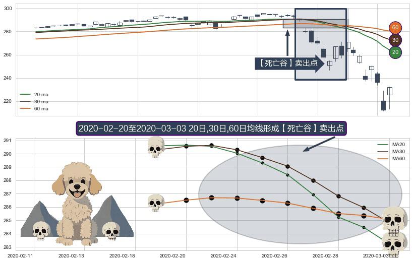 形态多维评估: ⚀ 2020-02-21-日至2020-03-03-日显现 20日-30日-60日均线 【死亡谷】卖出点 看空信号,后市看跌,卖出