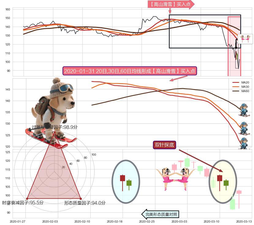 | 4 🅚:单针探底(定海神针) ➕ 🎢:【高山滑雪】买入点均线组合买入点信号形成后,猜想后续下行结束,持续反弹上涨(均值回复) ☞ 看多信号 ⇥ 【均线】交织【🅚线】⇥ 综合量化分数: 51 | > |