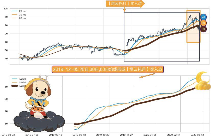 ⚀ 2019-08-30日-2020-03-12日显现 20日-30日-60日均线 【烘云托月】买入点 看多信号,后市看涨,买入