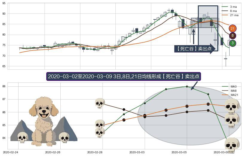 ⚀ 2020-03-03-日至2020-03-09-日显现 3日-8日-21日均线 【死亡谷】卖出点 看空信号,后市看跌,卖出