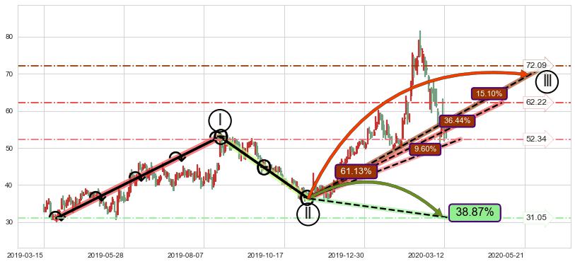 ➣ 循环浪继续向上【平均值】位置(2020-05-01, 62.22),匹配聚类样本比例59.60%, 可能性概率36.44%