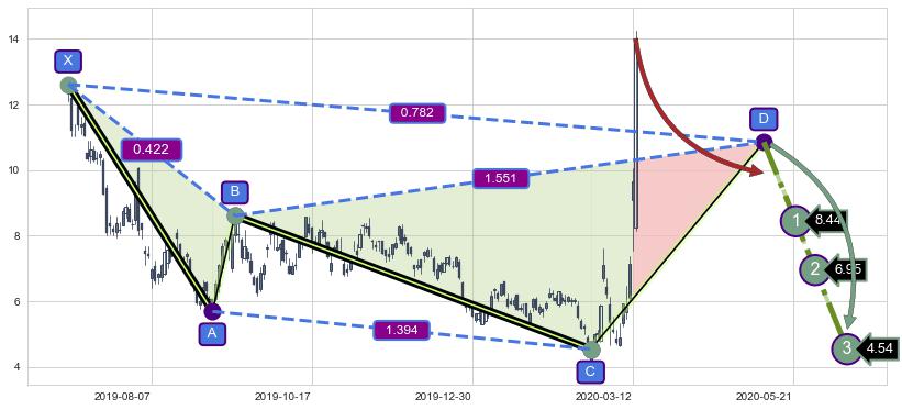 ➣ D点拟合预测价格10.85,距离最后交易收盘价格14.01相差 -22.55%