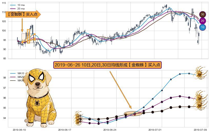 ⚀ 2019-06-26日显现 10日-20日-30日均线 【金蜘蛛】买入点 看多信号,后市看涨,买入