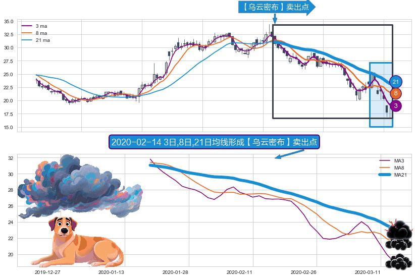 形态多维评估: ⚀ 2020-01-17日-2020-03-13日显现 3日-8日-21日均线 【乌云密布】卖出点 看空信号,后市看跌,卖出