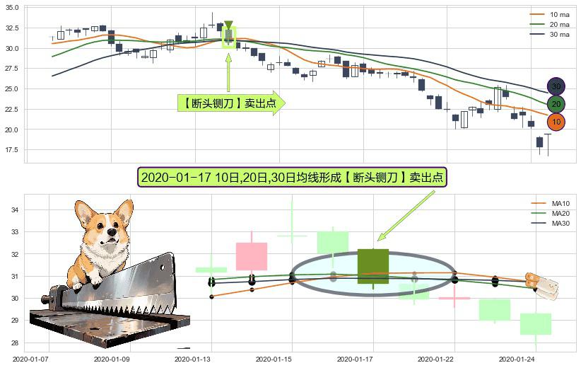 形态多维评估: ⚀ 2020-01-17日显现 10日-20日-30日均线 【断头铡刀】卖出点 看空信号,后市看跌,卖出