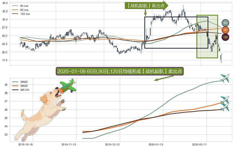 形态多维评估: ⚀ 2019-11-18日-2020-02-21日显现 60日-90日-120日均线 【战机起航】卖出点 看空信号,后市看跌,卖出