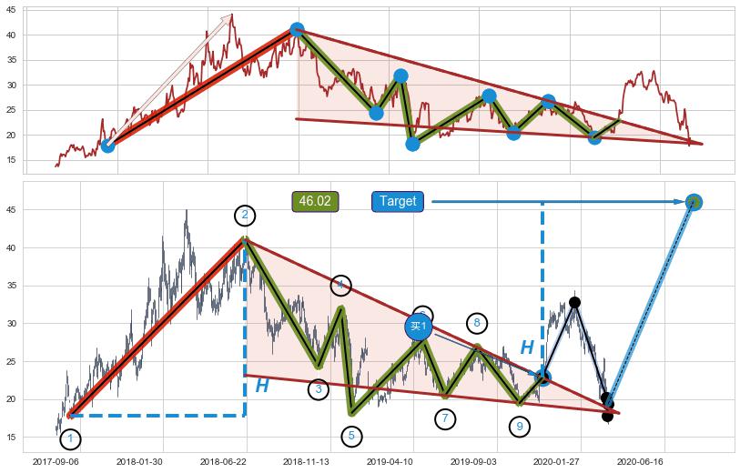 ➣ AI预测: 假定反转启动后, 第❶目标位置(2022-05-18, 17.98)