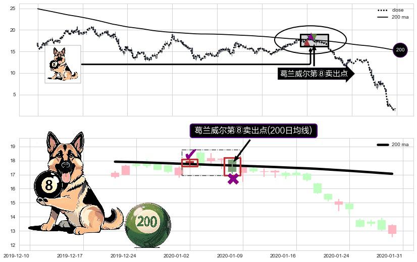 ⚀ 2020-01-08-日显现 葛兰威尔均线 200日均线 第⑧卖出点 下降趋势的中继信号,后市看跌,卖出信号