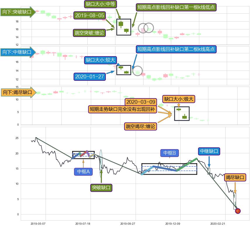 ➣ 中继缺口在突破缺口后再次向下跳空,趋势得到加固
