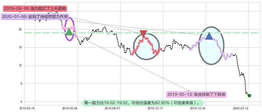 ♘ 阻力价格位19.02,可信任强度82.95%,距离最后交易2020-03-13形成的收盘价格1.7000相差 +1018.64%