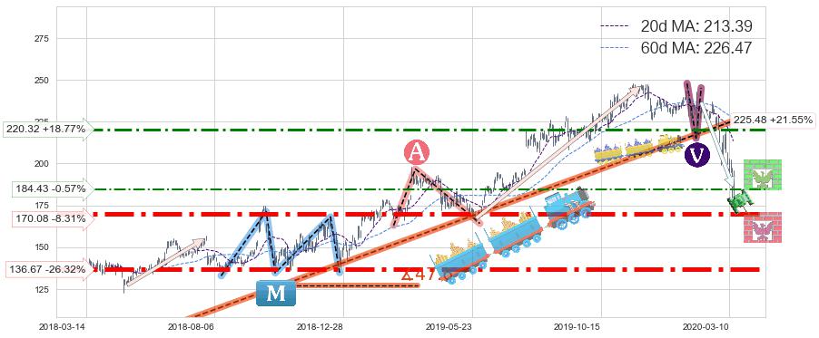 ♘ 阻力价格位220.32,可信任强度65.35%,距离最后交易2020-03-13形成的收盘价格185.50相差 +18.77%