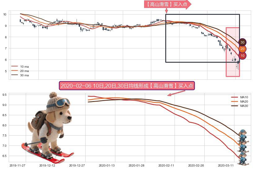形态多维评估: ⚀ 2019-12-30日-2020-03-13日显现 10日-20日-30日均线 【高山滑雪】买入点 看多信号,后市看涨,买入