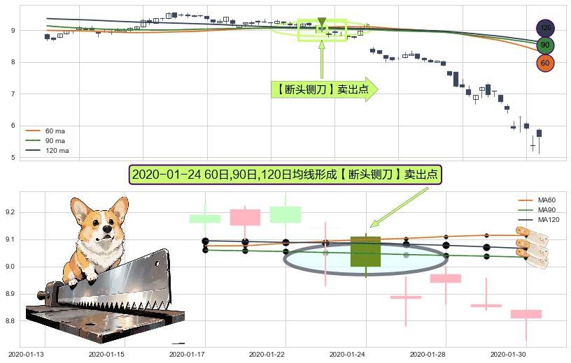 形态多维评估: ⚀ 2020-01-24日显现 60日-90日-120日均线 【断头铡刀】卖出点 看空信号,后市看跌,卖出