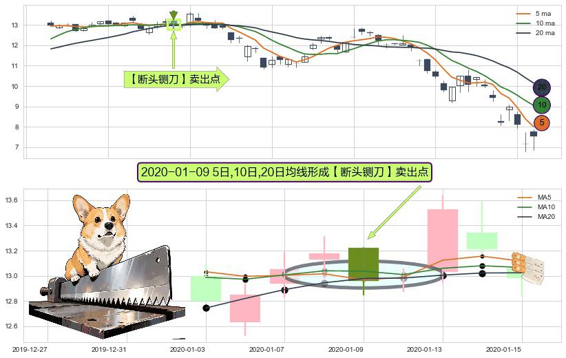 形态多维评估: ⚀ 2020-01-09日显现 5日-10日-20日均线 【断头铡刀】卖出点 看空信号,后市看跌,卖出