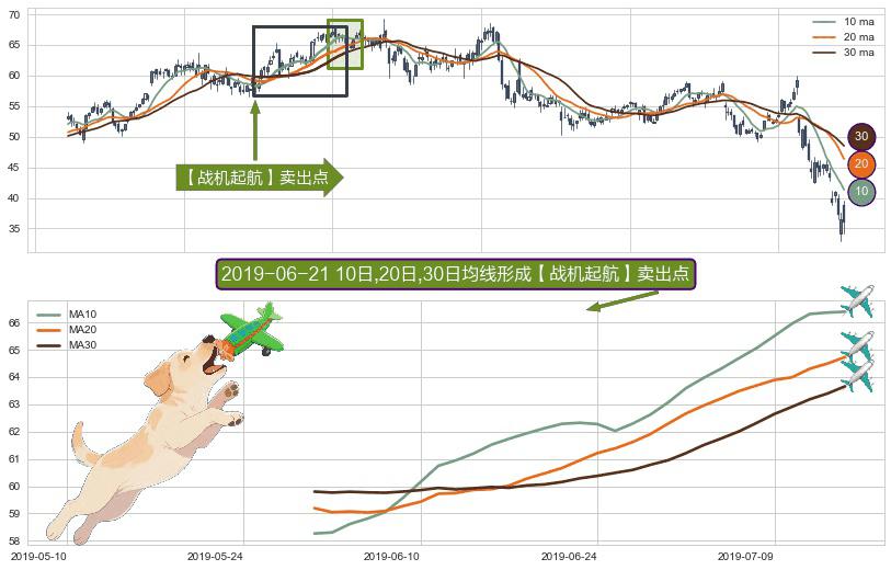 形态多维评估: ⚀ 2019-05-31日-2019-07-15日显现 10日-20日-30日均线 【战机起航】卖出点 看空信号,后市看跌,卖出
