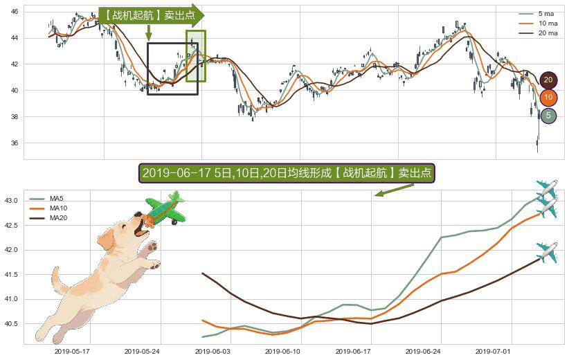 形态多维评估: ⚀ 2019-05-30日-2019-07-03日显现 5日-10日-20日均线 【战机起航】卖出点 看空信号,后市看跌,卖出