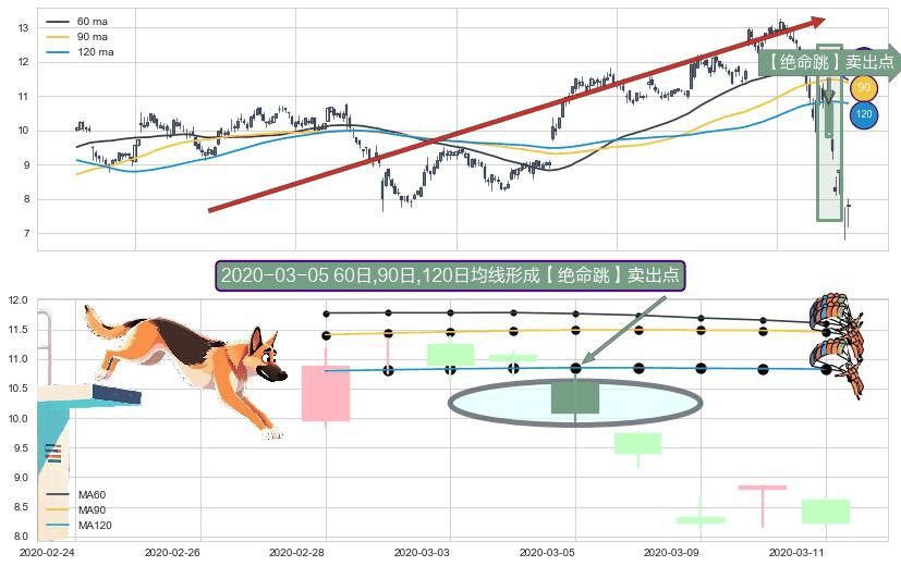 ⚀ 2020-03-05日显现 60日-90日-120日均线 【绝命跳】卖出点 看空信号,后市看跌,卖出