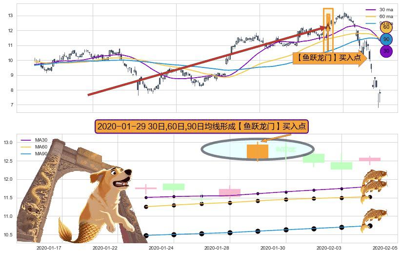 ⚀ 2020-01-29日显现 30日-60日-90日均线 【鱼跃龙门】买入点 看多信号,后市看涨,买入