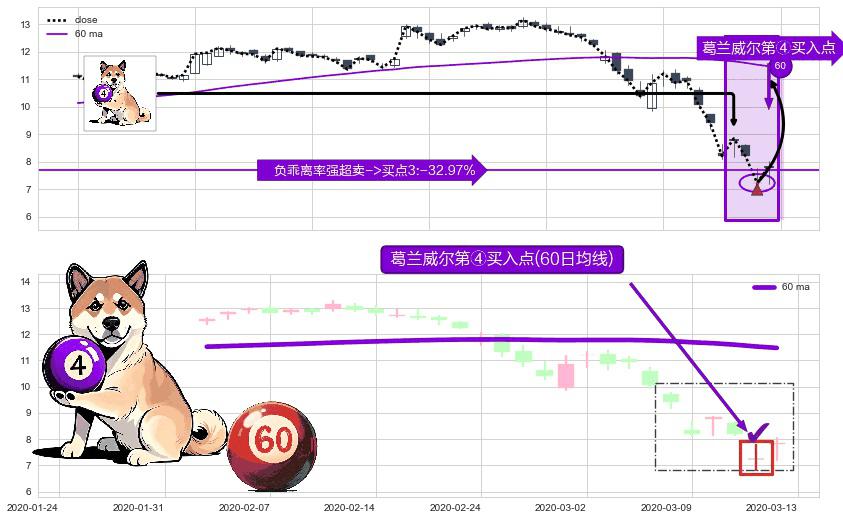⚀ 2020-03-12-日显现 葛兰威尔均线 60日均线 第④买入点 下降趋势均值回复的短线反弹信号,后市看涨,买进信号