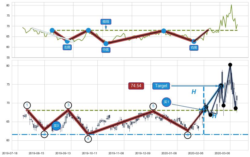 ➢ 图示②④⑥三个波谷均在 68.08 附近成功获得【支撑】→反弹上涨