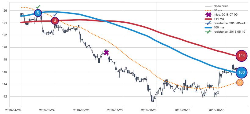 ⚁ MA3和MA8走势平行,且始终保持在短距离内,MA21始终在短中期均线下方,与短中期均线保持一定的距离,微微上行