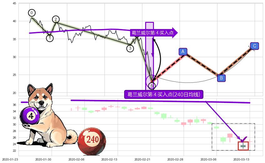 ➢ 收盘价(2020-03-13: 24.71 )→回踩→第二根k线高点(2020-03-12: 24.34 )