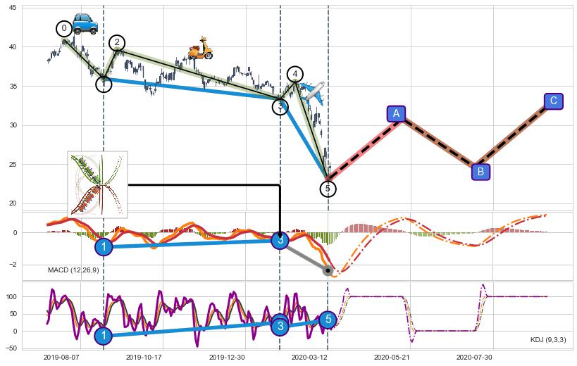 | 2 🅚:【高山滑雪】买入点 ➕ 🌊:波浪理论猜想下跌浪5已形成,猜想后续形成abc反弹上涨(均值回复) ☞ 看多信号 ⇥ 【均线】交织【图形】⇥ 综合量化分数: 52 | > |