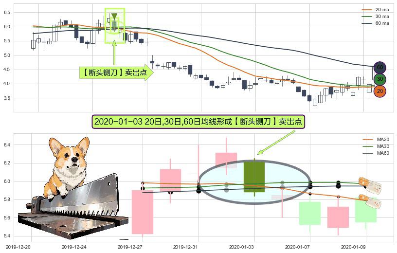 形态多维评估: ⚀ 2020-01-03日显现 20日-30日-60日均线 【断头铡刀】卖出点 看空信号,后市看跌,卖出