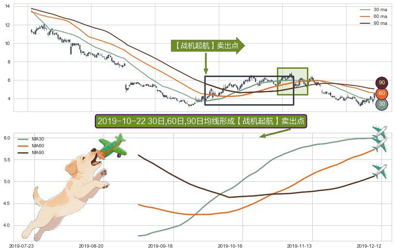 形态多维评估: ⚀ 2019-09-04日-2019-12-10日显现 30日-60日-90日均线 【战机起航】卖出点 看空信号,后市看跌,卖出