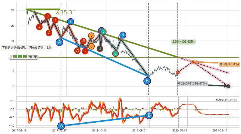 ♘ 阻力价格位21.24,可信任强度94.74%,距离最后交易2020-03-13形成的收盘价格4.59相差 +362.79%