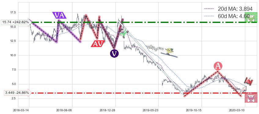 ♘ 阻力价格位15.74,可信任强度83.74%,距离最后交易2020-03-13形成的收盘价格4.59相差 +242.82%