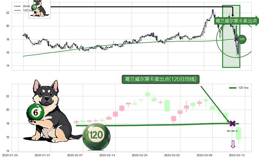 ⚀ 2020-03-12-日显现 葛兰威尔均线 120日均线 第⑥卖出点 走势反转见顶信号,后市看跌,卖出信号