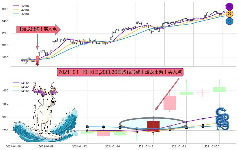 ⚀ 2021-01-19日显现 10日-20日-30日均线 【蛟龙出海】买入点 看多信号,后市看涨,买入