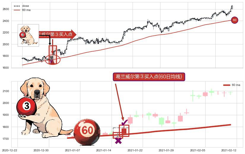 ⚀ 2021-01-19-日显现 葛兰威尔均线 60日均线 第③买入点 上升趋势的中继信号,后市看涨,买进信号