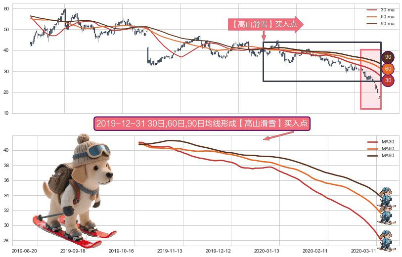 ⚀ 2019-10-18日-2020-03-13日显现 30日-60日-90日均线 【高山滑雪】买入点 看多信号,后市看涨,买入