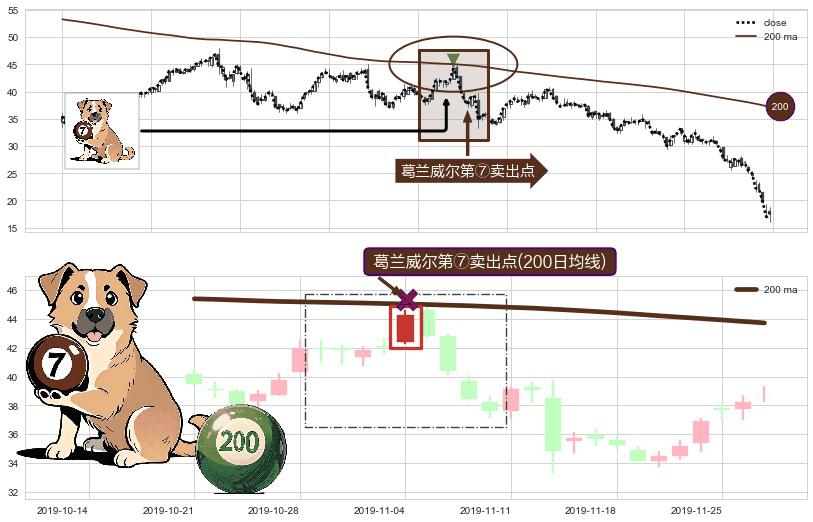 ⚀ 2019-11-04-日显现 葛兰威尔均线 200日均线 第⑦卖出点 下降趋势的中继信号,后市看跌,卖出信号