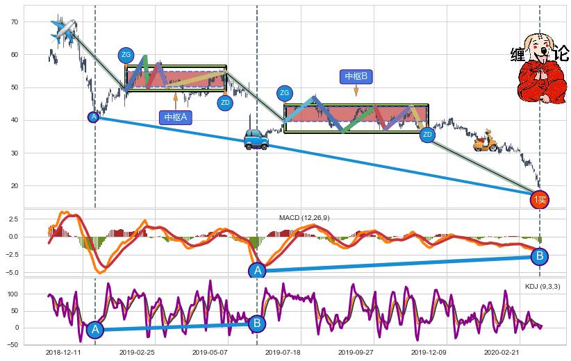 ➣ 【已完成】缠论 起点:2018-11-16,完成第1中枢A,完成第2中枢B,终点:2020-03-12,缠论共330交易日