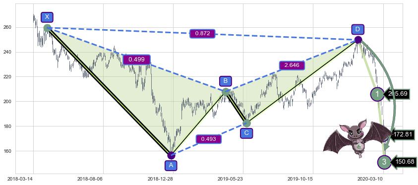 ➣ 已完成【蝙蝠】形态起点X: 2018-04-12, 终点D: 2020-01-16, 共445交易日