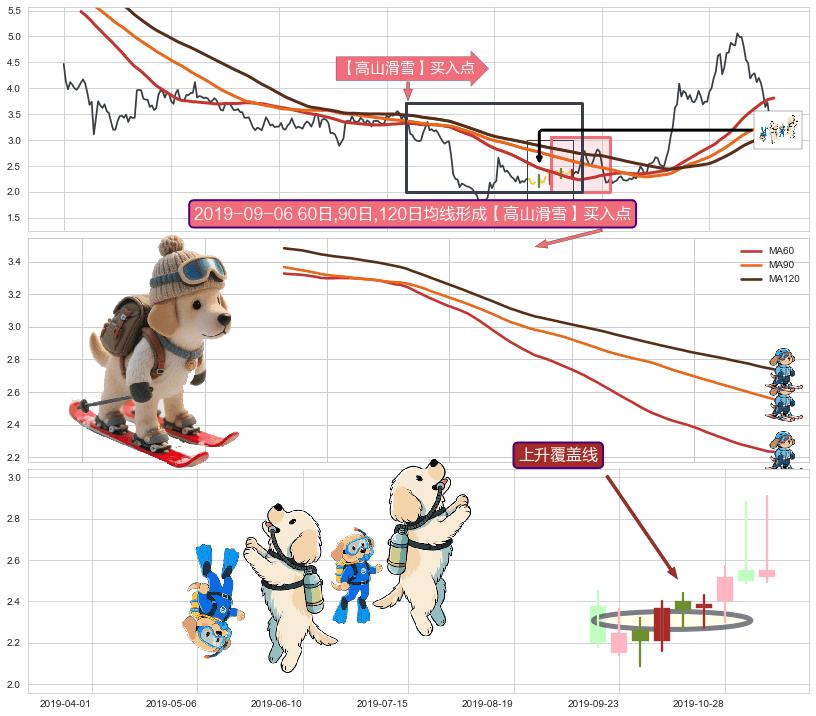 | 2 🅚:冉冉上升|稳步上涨 ➕ 🎢:【高山滑雪】买入点均线组合买入点信号形成后,猜想后续下行结束,持续反弹上涨(均值回复) ☞ 看多信号 ⇥ 【均线】交织【🅚线】⇥ 综合量化分数: 55 | > |