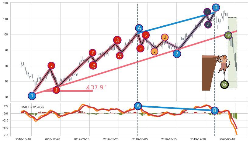 ➣ 【多空实力根本性转变→大方向抉择→空方占优】已在2020-03-11突破【支撑】颈线 85.13