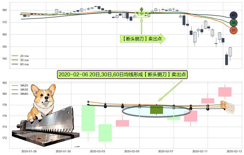 形态多维评估: ⚀ 2020-02-06日显现 20日-30日-60日均线 【断头铡刀】卖出点 看空信号,后市看跌,卖出