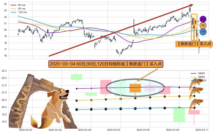 形态多维评估: ⚀ 2020-03-04日显现 60日-90日-120日均线 【鱼跃龙门】买入点 看多信号,后市看涨,买入