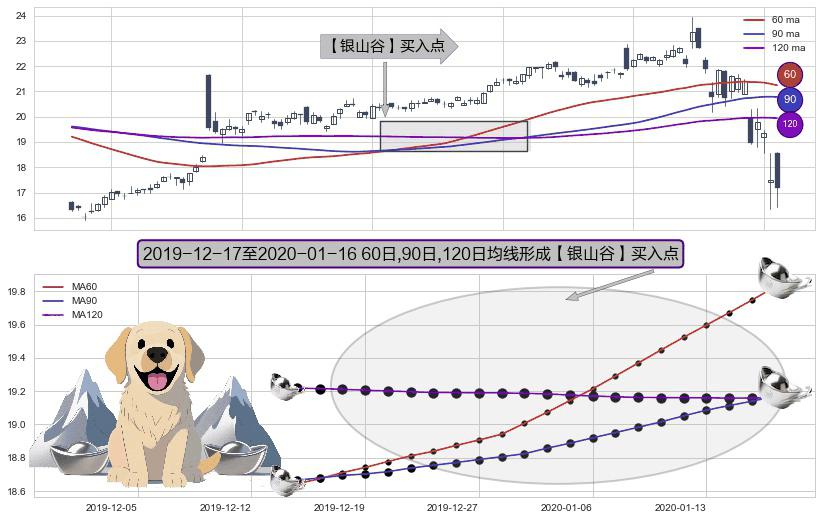 形态多维评估: ⚀ 2019-12-18-日至2020-01-16-日显现 60日-90日-120日均线 【银山谷】买入点 看多信号,后市看涨,买入
