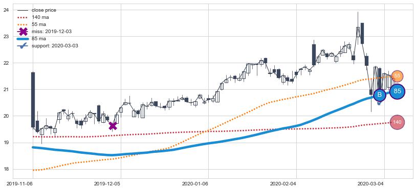 上涨趋势2017-03-15-2018-02-23,均线140确认关键支撑1处
